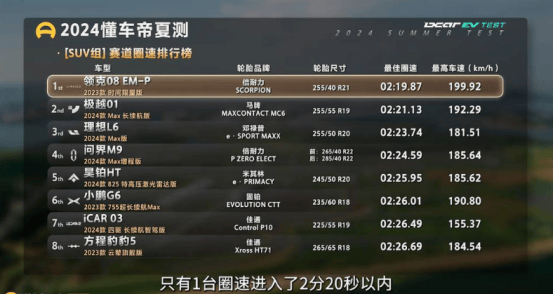 测评汇集了市场上39款主流新能源车型,而领克08EM-P凭借出色的表现,以02:19.87的成绩斩获SUV组别冠军。作为唯一进入榜单前列的混动SUV,它不仅展示了强大的动力输出,更证明了在赛道上同样可以拥有卓越的表现。