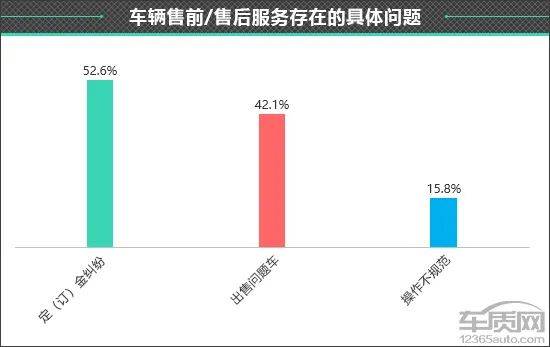 不过,在售前/售后服务总体评价中,接受调查的车主还是给出了客观的评价,其中认为“非常满意”的车主占比为17.3%;认为“满意”的车主占比为47.3%;认为“一般”的车主占比为27.3%;明确表示“不满意”的车主占比为8.1%。