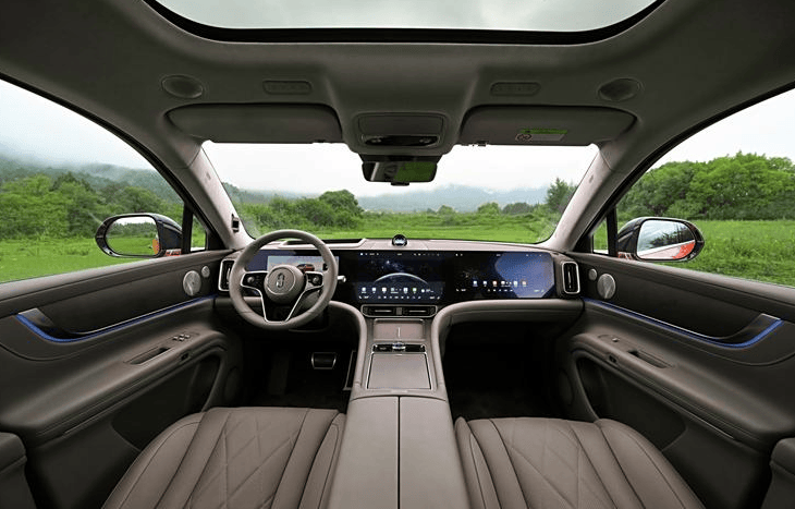 再来便是新车的内饰,新车的内饰提供5种配色,标配“月影灰”、“赤茶橘”,可选装“望舒杏”和全新设计的“松露棕”、“琥珀棕”配色。中控台的部分依旧是采用一体环宇三联屏设计,包含12.3英寸的液晶仪表盘、15.6英寸智能中控大屏和16英寸副驾娱乐屏。