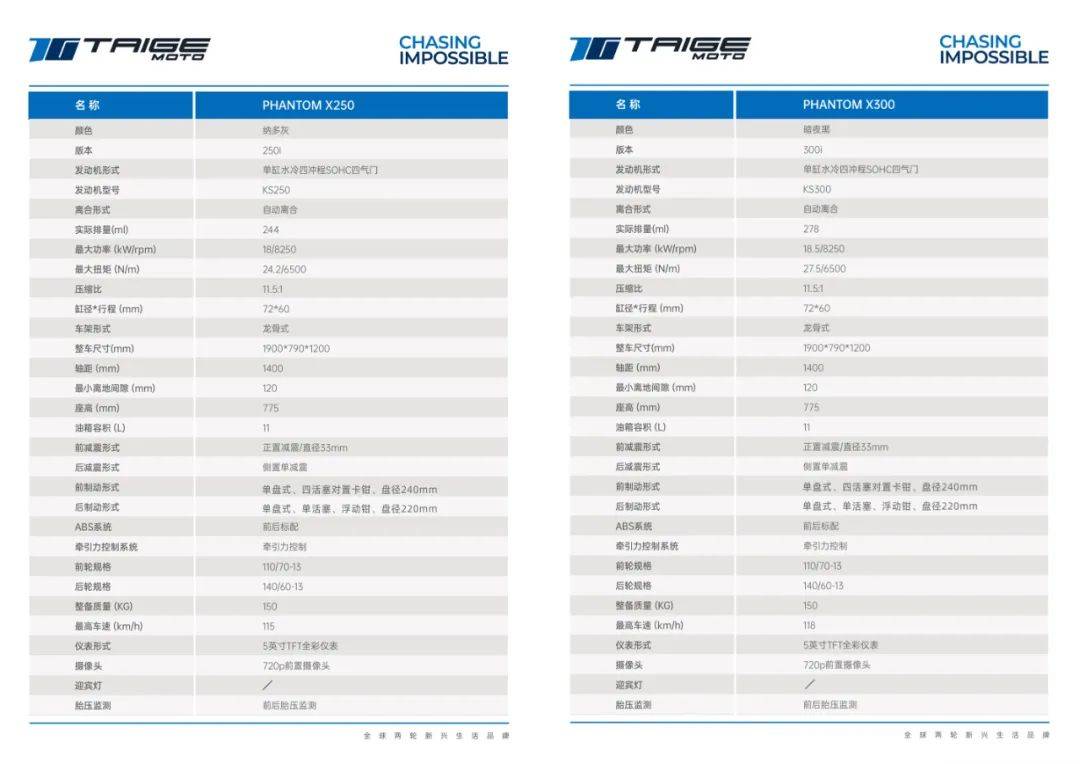 PHANTOM X250/300飞腾,采用无钥匙启动、5寸圆形投屏TFT仪表、11L加大油箱、720P前置摄像头、仿赛LED组合大灯。