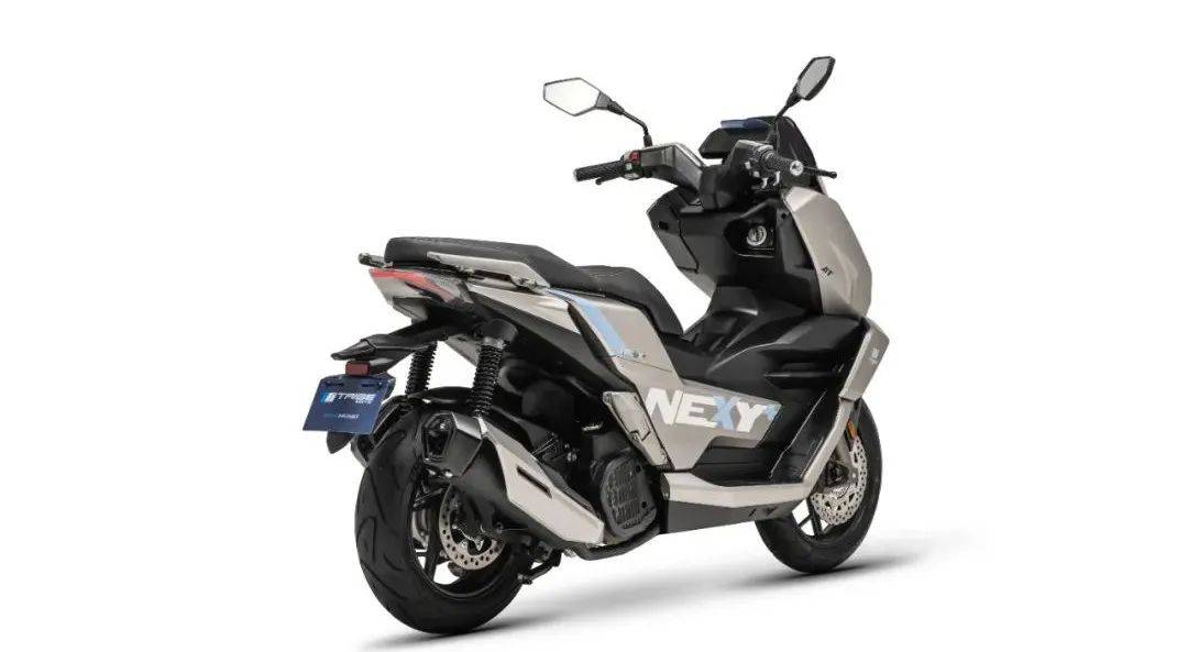 前后可调节刹车手柄,12V8.6AH轻混助力铅酸电池,让起步加速更快更顺畅,脚踏板/把手上盖/前铝轮都有一个NEXY+装饰件,高配腾森TIMSUM TS-660高抓地力轮胎、低配正新CST C6531轮胎。