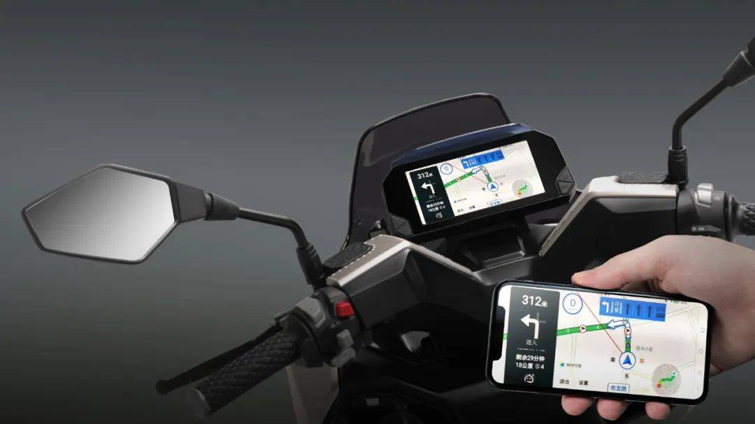 航特前后双通道ABS,高配标配TCS、手把加热、前后胎压监测、照地迎宾灯、内置720P前置摄像头,透过APP提取视频。