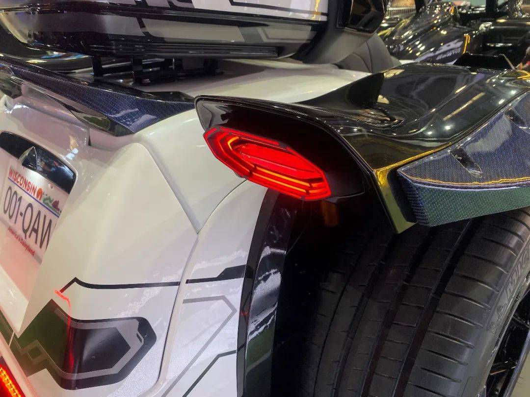 毫不夸张的说,整个N7场馆找不出第二台造型可以和“无双“进行PK的产品,其外观小编想用”震撼“两个字来形容。”无双“的车身尺寸做到了以摩托车现行法规3mX1.5m为基准的满尺寸,并且外观设计上也是充满了硬派风格的细节。