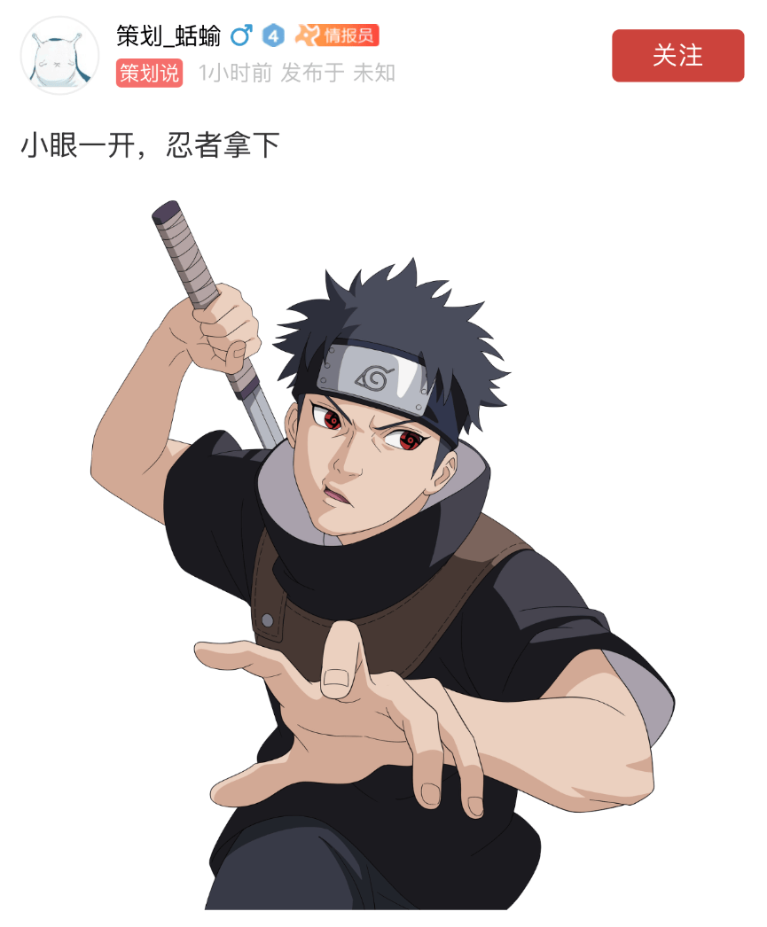 下个赛季的忍法帖S忍须佐能乎止水在月底才上架,现在还有半个月的时间,魔方已经开始各种预热了。前段时间是放出了一个海报,现在是有一些整活的视频以及策划的机制暗示,下面这张图就是策划蛞蝓放出的一个须佐能乎止水的立绘,而且还提到说“小眼一开,忍者拿下”。通过这个描述基本就可以聚焦到宇智波止水的写轮眼,而他的写轮眼比较有代表性的就是幻术别天神。