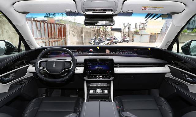 内饰方面,·中控采用了三屏联动的设计,彰显出不错的科技感。再加上双幅式的方向盘与旋钮式的换挡机构,驾驶氛围十足。材质方面,采用了大量软质材料包裹,搭配精致的缝线,质感舒适。配置方面,根据车型不同,提供了防侧翻系统、百度地图、主动式环境氛围灯、空气质量监测、Lincoln BlueCruise辅助驾驶、自动变道辅助等。