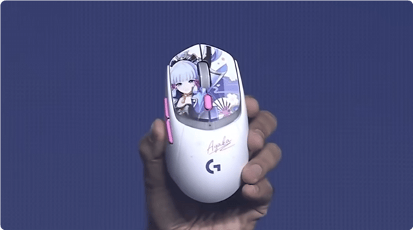 据了解,该定制款鼠标基于罗技G309打造,整体为白色配色,左右按键为神里绫华图案,侧键为粉色设计,鼠标上还有神里绫华的名字。
