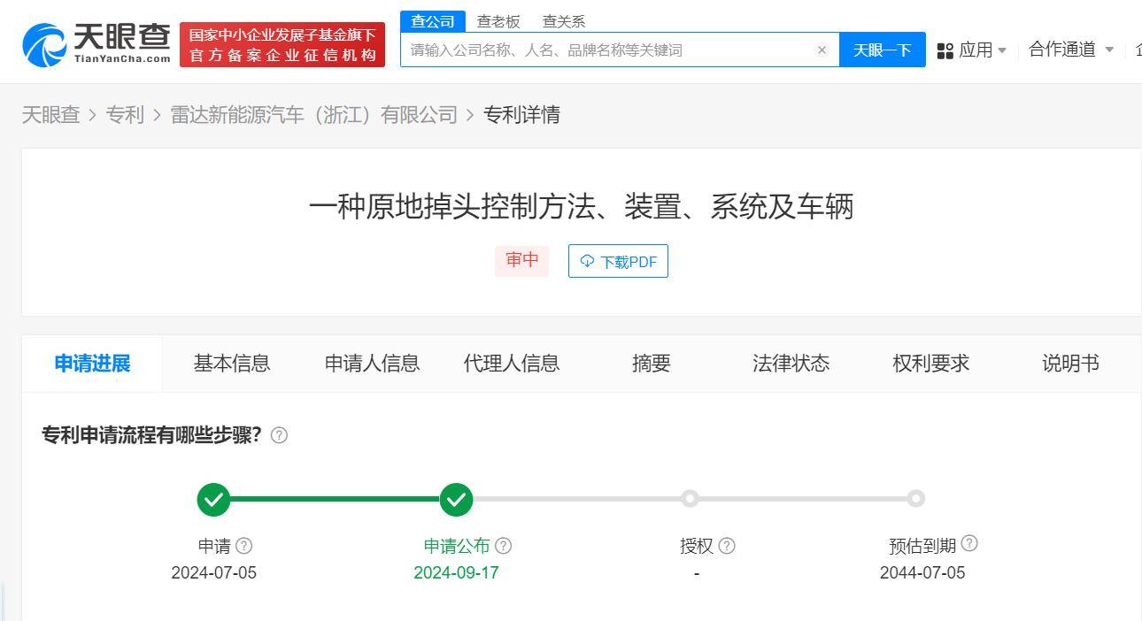 9月19日消息,浙江吉利控股集团有限公司与雷达新能源汽车(浙江)有限公司近日公布了一项名为“一种原地掉头控制方法、装置、系统及车辆”的专利。该专利技术的引入,为汽车行业带来了一种革新性的原地掉头解决方案。