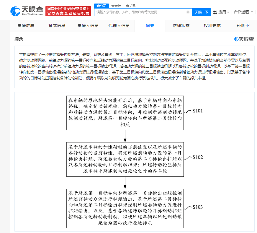 据ITBEAR了解,这项专利所述的控制方法能够在原地掉头功能启动后,通过综合分析车辆的转向信号和档位信息,精确地确定需要制动锁死的车轮。同时,系统还会根据加速踏板的实时位置以及各转动轮的当前转速,动态计算出前轴动力源和后轴动力源的目标输出扭矩,以及各轮的目标制动扭矩。这一系列复杂的计算和操作,都旨在使车辆能够以一个制动锁死的车轮为轴心,实现平稳且半径极小的原地掉头,从而极大地提升了车辆的操控灵活性和驾驶便捷性。