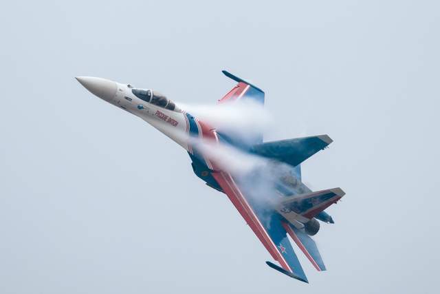 飞友们之间曾流传过一句话:“铁鸟也是鸟”。航展高机动战斗机飞行表演,某种程度上同鸟类摄影确实有相似之处。整体上,战机的飞行表演在运动的不可预测特性上不如鸟类拍摄,但高速状态下产生的诸多气象环境互动,如低速凝结云和机翼机头表面涡流等,还是有自己的独特难点。