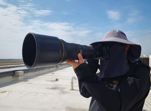 即使在开展后,为了获得较好、独特的拍摄视野,摄影师和热忱发烧友们也需要寻找各处制高机位,在现场交通条件限制下,甚至需要多次往返徒步移动数公里乃至十公里之多。在这种任务需求下,使用PF菲涅尔镜片的尼克尔轻量化定焦就派上了较大的用场。不论是爬石堆、登土坡,还是长时间的“负重行军”,对摄影师的体能都提出了极高的要求。