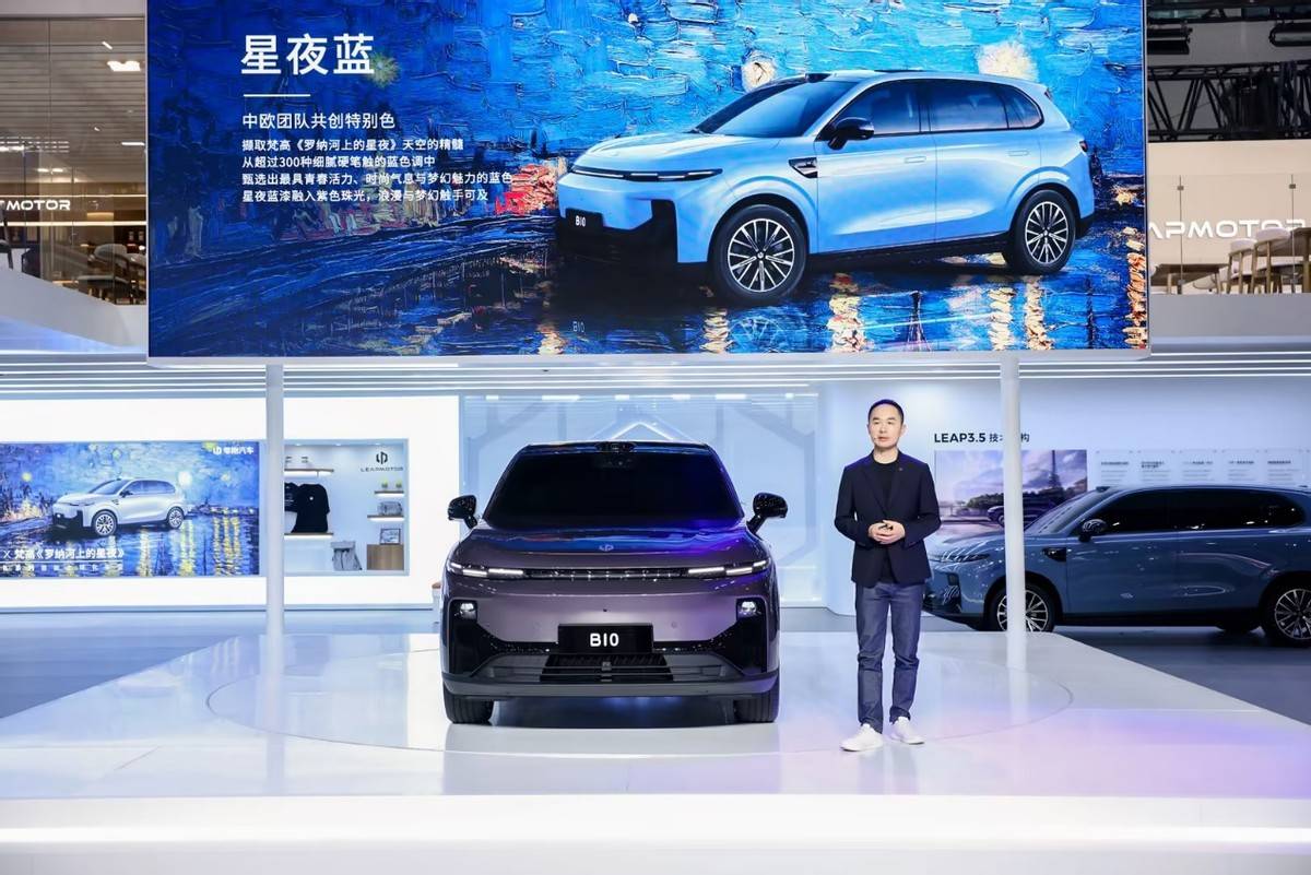 此次广州车展,零跑B10在国内正式亮相,带来全新星夜蓝、曦露紫展车,更有梵高《罗纳河上的星夜》联名款,吸引媒体和观众们的围观。