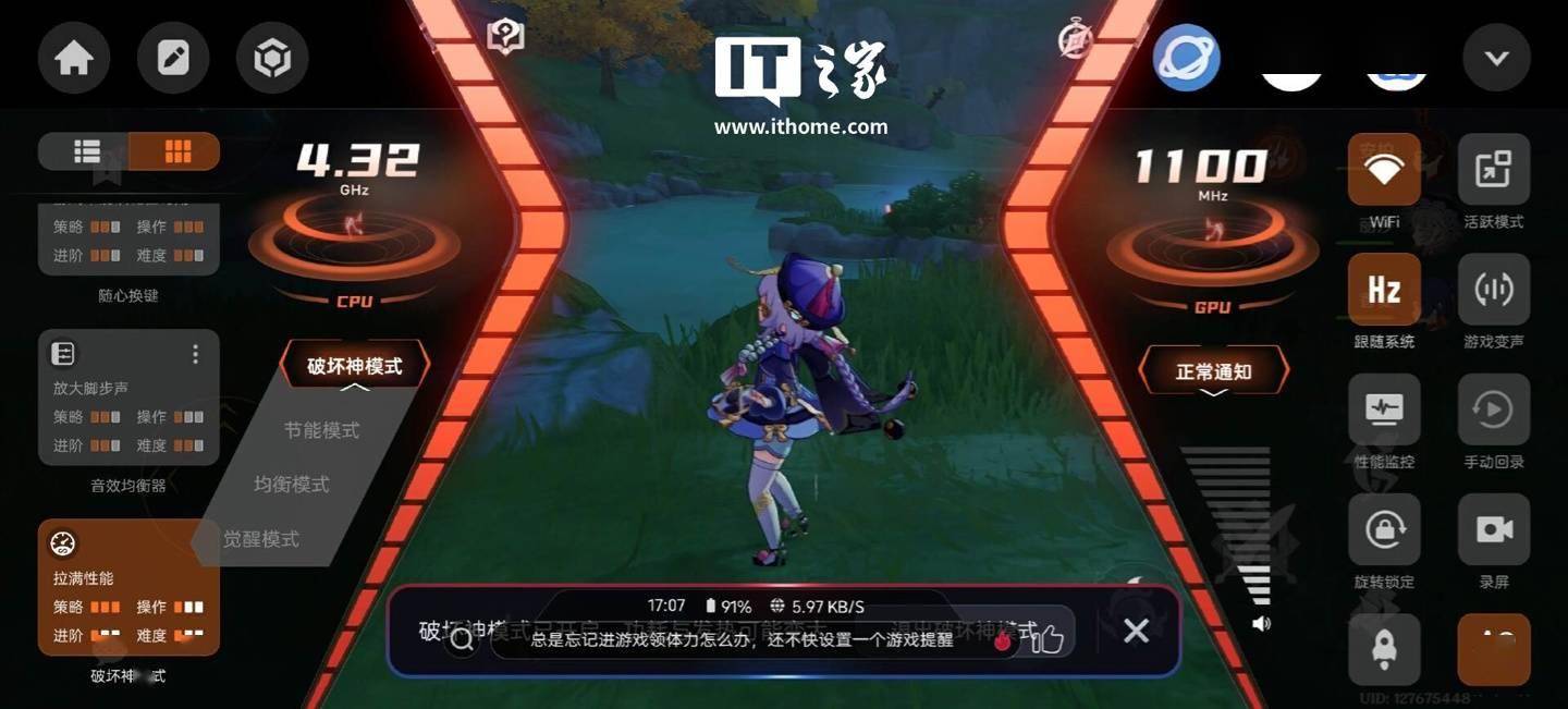 此外,你还可以开启“破坏神模式”,让处理器大核全开,解除所有温控限制,这个模式非常夸张,并不建议普通玩家开启。