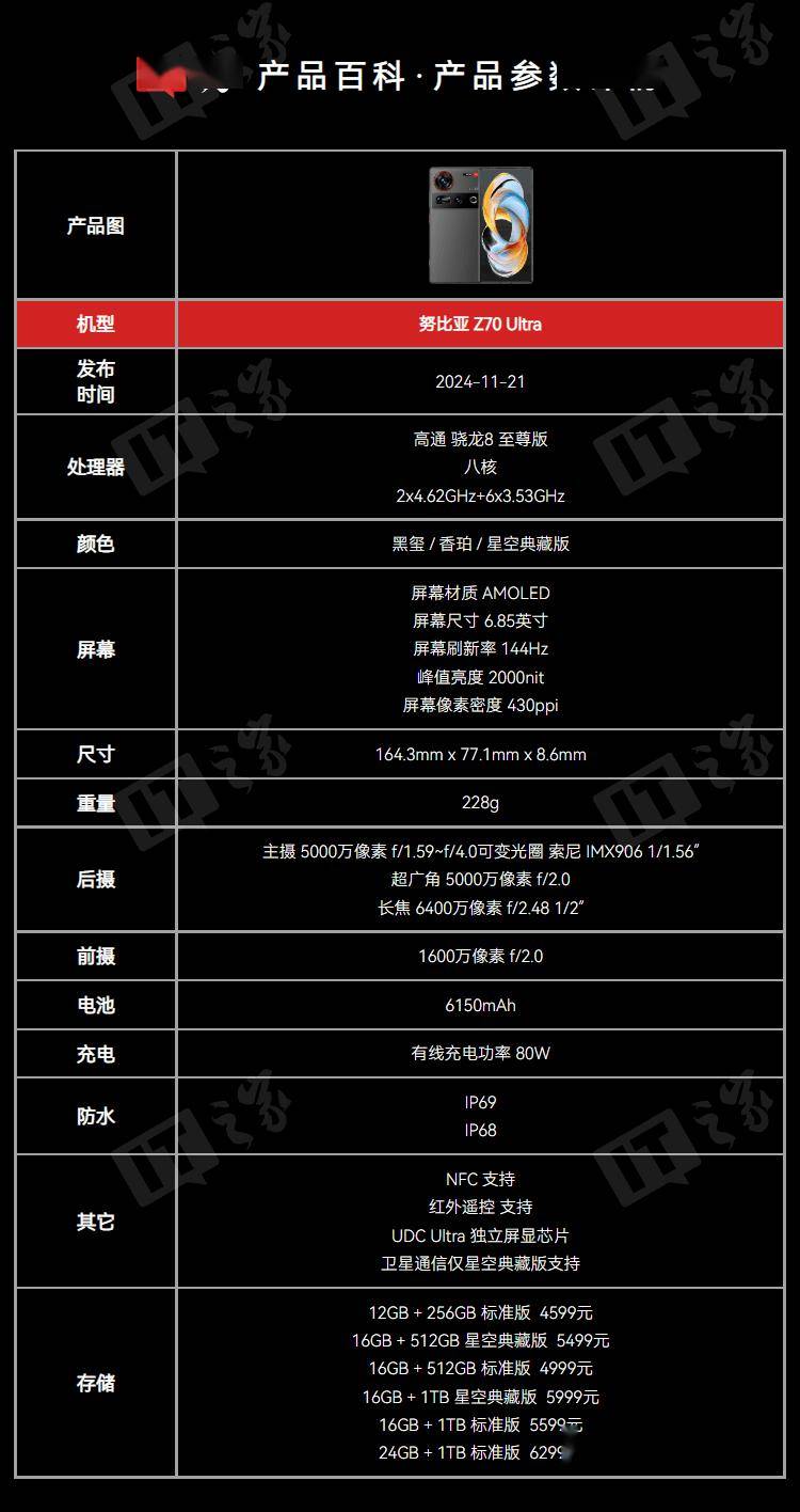 11 月 21 日,努比亚 Z70 Ultra 旗舰手机正式发布,定价 4599 元起。