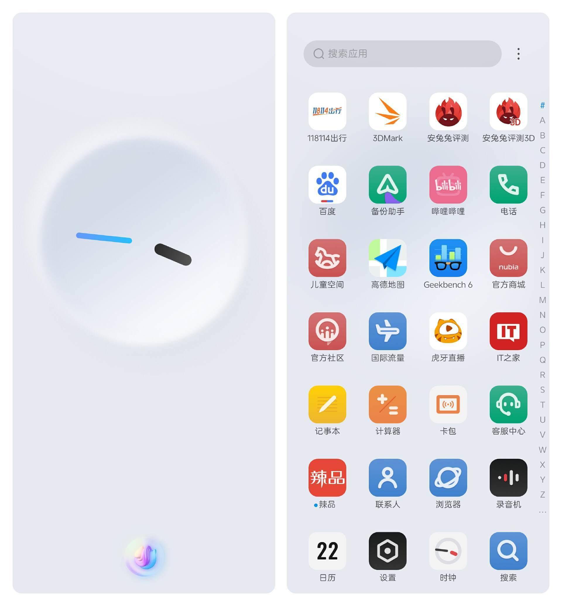 这套全新的系统,带了一个非常激进的交互模式 —— 未来模式,这是一个纯净而清爽的纯语音交互桌面,没有传统桌面的多页面布局,应用全部隐藏在二级抽屉栏里。主界面只有一个语音按钮和简约时钟。