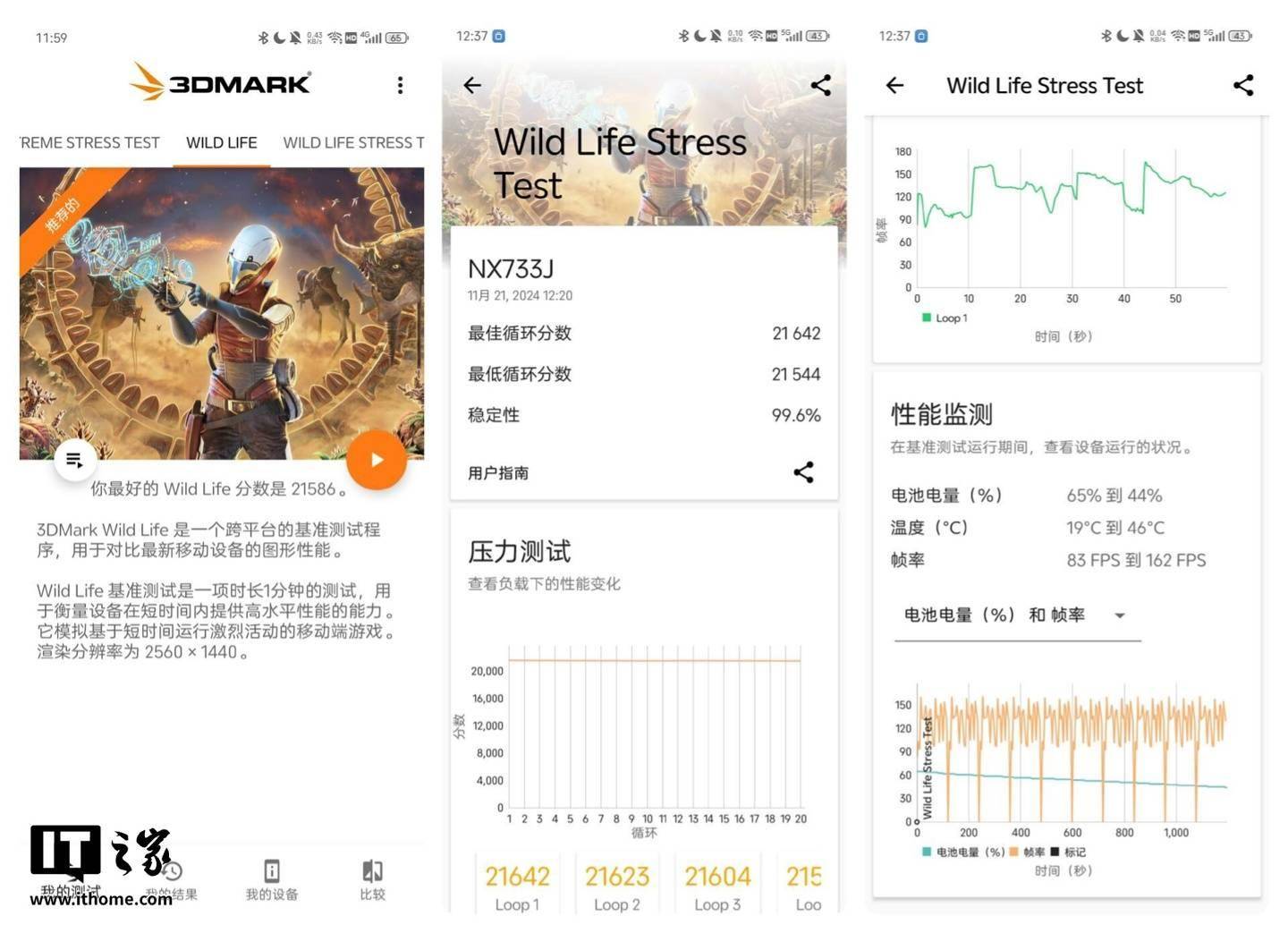 连续 20 轮高强度 Wild Life,努比亚 Z70 Ultra 稳定性竟然达到了 99.6%,最高分超过 2.1w,最低分还是 2.1W。