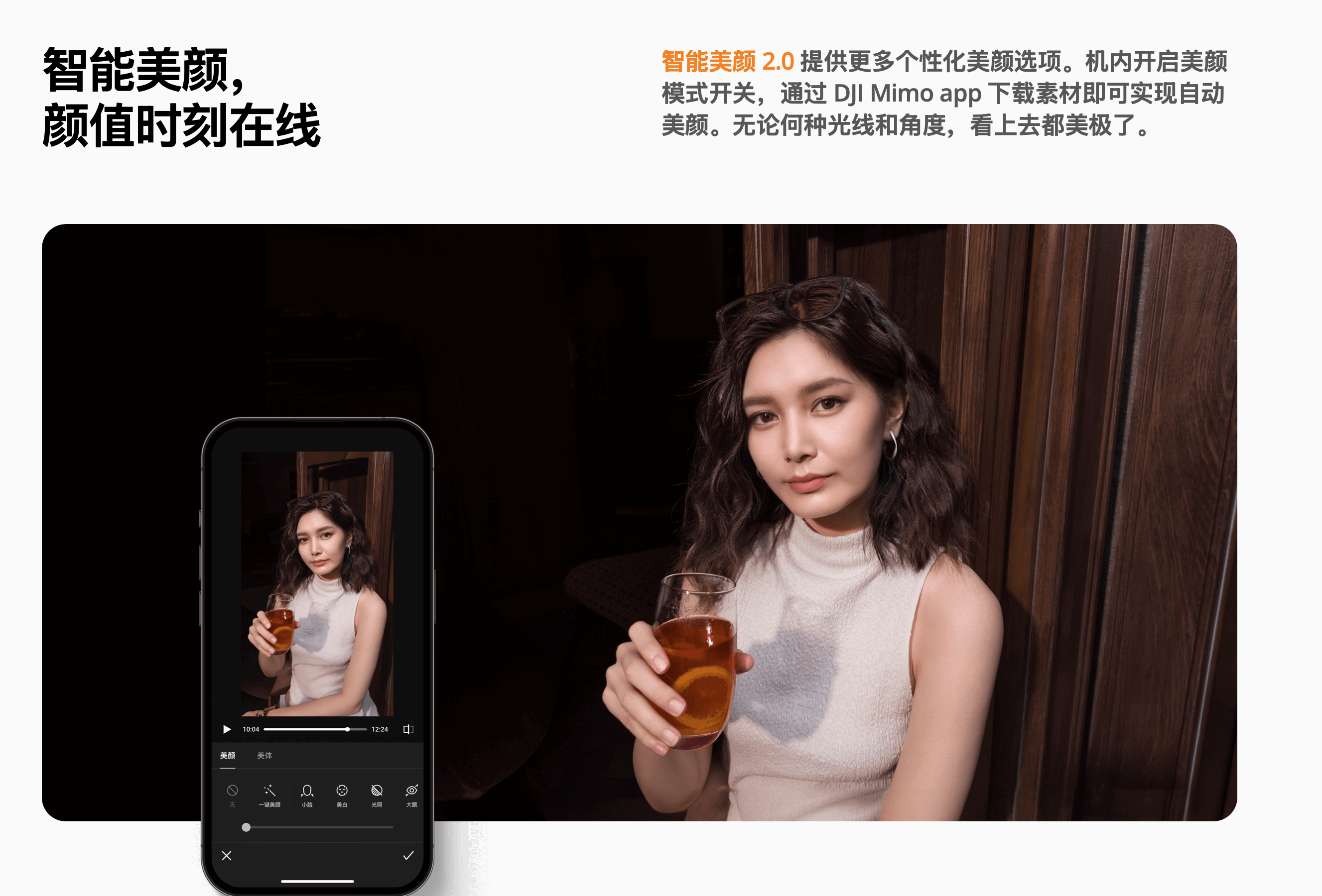 大疆很讨巧地在两者中取得了一个完美的平衡点,实现了十分自然的美颜效果。