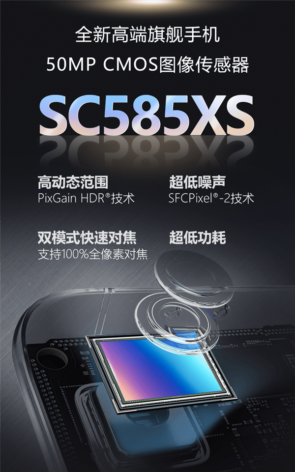 作为高端旗舰手机应用CIS,SC585XS实现了从设计、制造到量产的全流程国产化,兼具高性能与成本优势,为高端智能手机CIS本土化供应提供了选择。