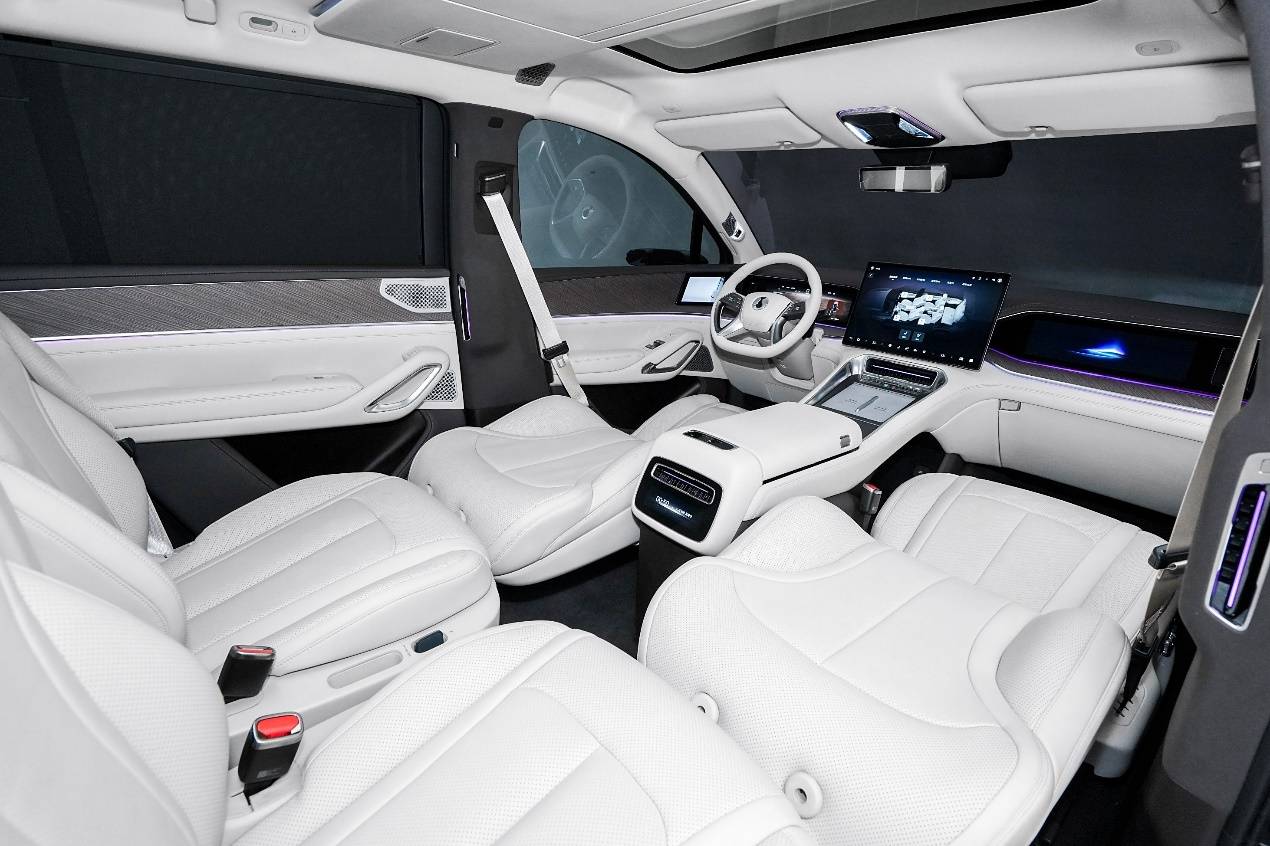 与此同时,腾势N9各排座椅的联动是一大特色,前排和第二排座椅在取下头枕之后,靠背都能180度向后放倒,与第二排或第三排形成一个平面。弥补了市面上很多6座车型不能变身“大床房”的缺憾。