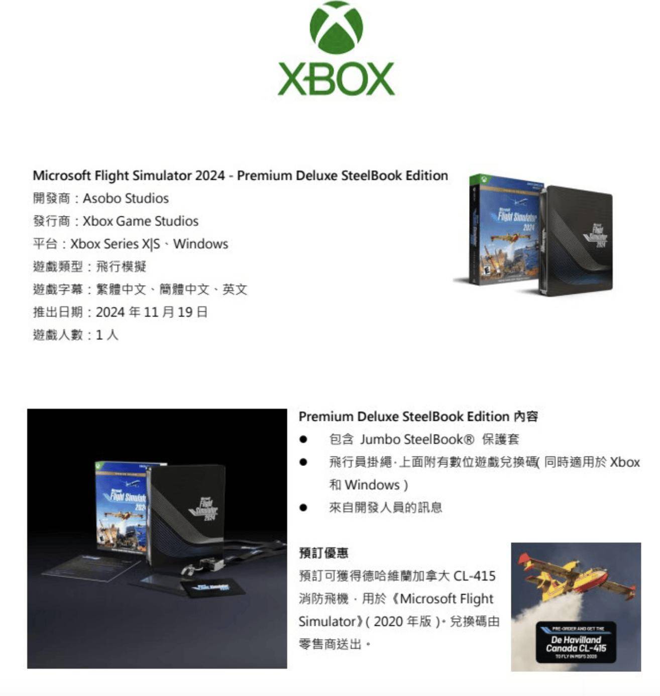 12 月 1 日消息,京东国际直营现已上架《微软模拟飞行 2024 高级豪华版(Microsoft Flight Simulator 2024 - Premium Deluxe Edition)》实体铁盒版(商品页面显示为《微软飞行模拟 2024 顶级豪华版》),定价为 850 元,将从京东香港直邮综合仓发货。