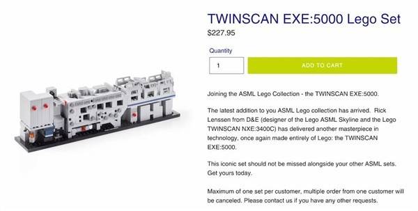 ASML在其官网的纪念品商城中推出了一款独特的乐高模型套装,这是基于其High NA EUV光刻系统TWINSCAN EXE:5000的产品。这款模型由ASML的员工Rick Lenssen设计,他同时也是一名乐高爱好者。该模型精确复刻了TWINSCAN EXE:5000的外观,包含851个零件,尺寸为宽352mm、高99mm、深64mm,售价为227.95美元,约合人民币1653元。