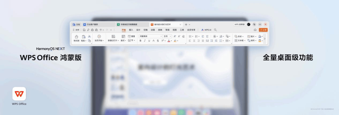 首先是桌面级的布局,WPS Office 鸿蒙版在华为平板上还原了桌面端的界面布局。这种大屏视角下的各层级工具栏清晰可见,用户能够在电脑端和平板端无缝切换;其次是1:1还原了桌面端的全量工具栏,包含文字、演示、表格及 PDF 编辑能力;再者就是统一账号及服务,不仅支持华为账号登录,个人账号下已有增值服务可直接在 WPS Office 鸿蒙版上使用。
