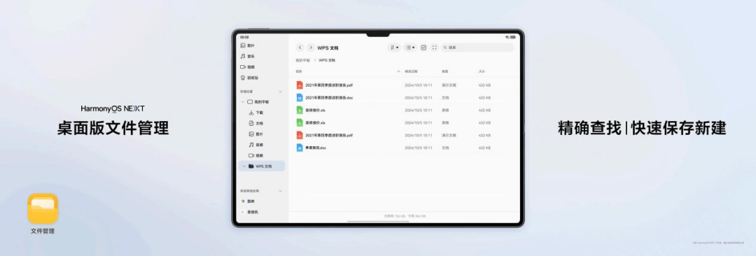 从工业设计到思维导图再到文档处理,这些专业级的生产力工具需要一个桌面级的文件管理模式。为此,全新HUAWEI MatePad Pro 13.2 英寸还支持PC版文件管理。它不仅支持全新的模糊搜索功能,实现文件精确查找,同时还能够在文件管理内部新建和应用内快速保存,从而还原桌面端的文件管理体验。