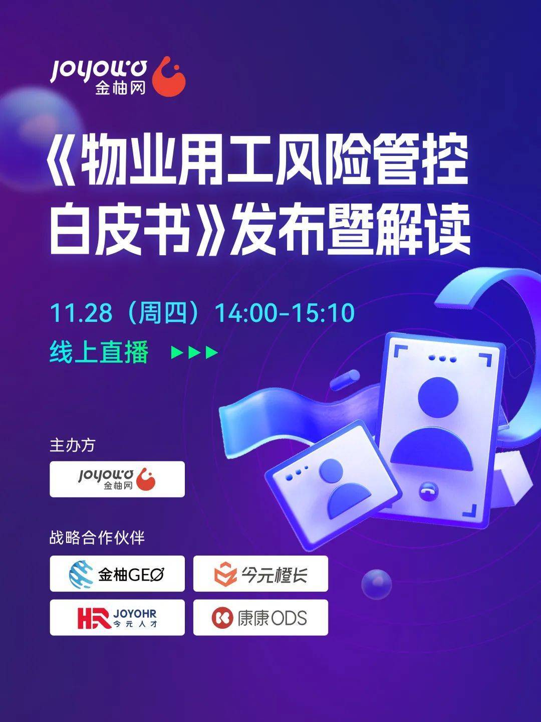2024年11月28日,由金柚网主办,金柚GEO、今元橙长、今元人才、康康ODS战略合作的《物业用工风险管控白皮书》发布暨解读线上直播课成功举办。此次活动旨在助力物业行业应对用工挑战,探讨如何通过提升人力资源管理来增强企业核心竞争力、提高业务运营效率。