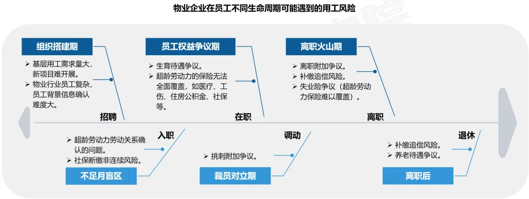 三、覆盖员工全生命周期的外包服务体系,全方位管控风险。员工从入职到离职的整个生命周期都会涉及到法律规范问题。物业行业还会面临劳动关系认定难、员工权益保障落实难等诸多问题。为保障物业管理项目顺利开展及用工合规,金柚网设计覆盖员工全生命周期的外包服务体系,全方位捕捉并前置管控潜在用工风险。
