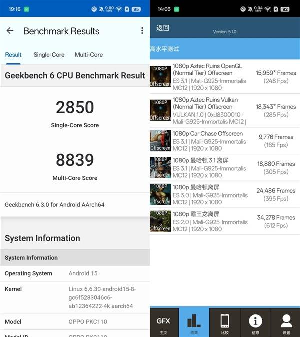 实际测试中,其CPU单核得分2850分,多核得分高达8839分。与上一代天玑9300相比,其单核和多核性能分别提升了29.3%和24%。