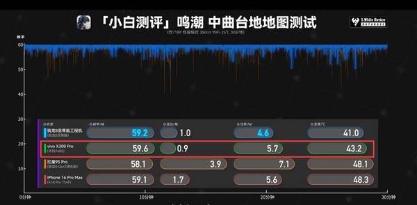 而在渲染压力更大的《崩坏:星穹铁道》黄金时刻跑图测试中,设置为非常高+60帧画质时,OPPO Find X8 Pro的平均帧率可达59.8帧,明显高于iPhone 16 Pro Max(平均帧率55.3帧),达到了当前智能手机的顶尖水平。