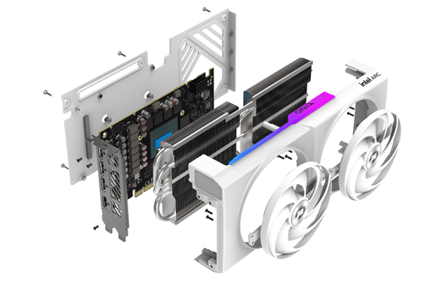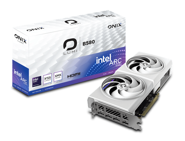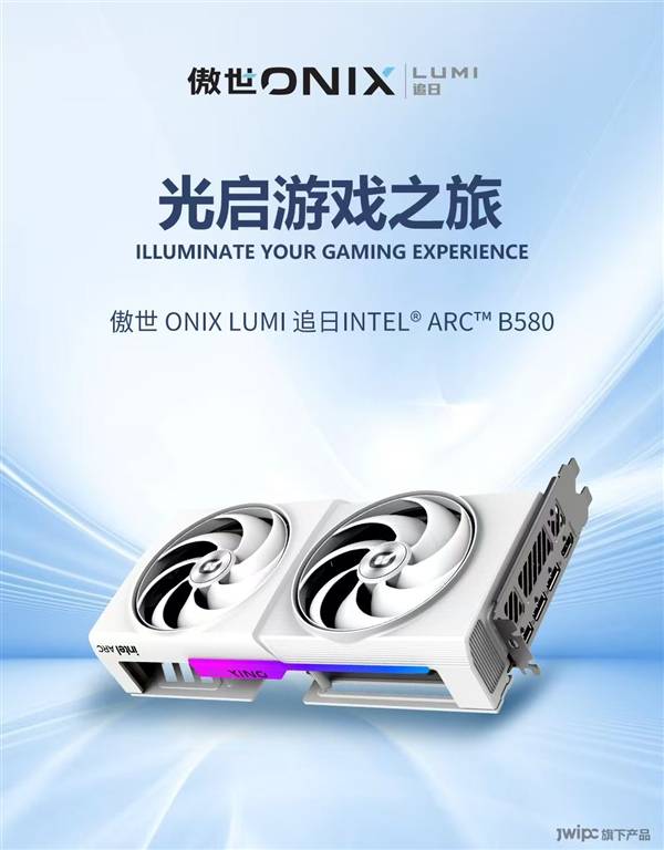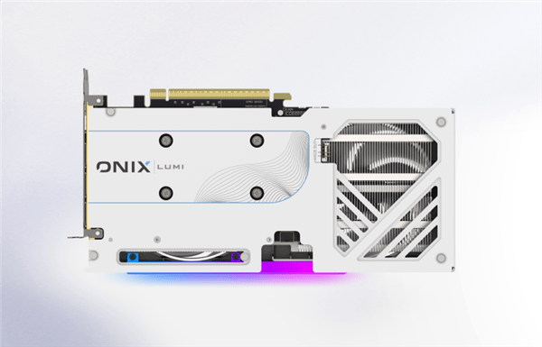 傲世LUMI追日锐炫B580采用了不多见的纯白设计(铭瑄之外唯一一家),简洁优雅,厚度也只有2.2插槽(52毫米),非常适合搭建白色主机海景房。