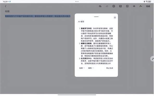 联想YOGA Pad Pro AI理解内容并润色、续写