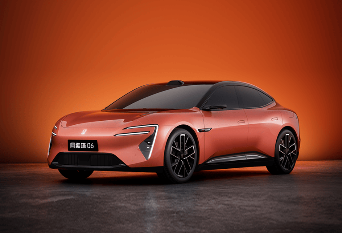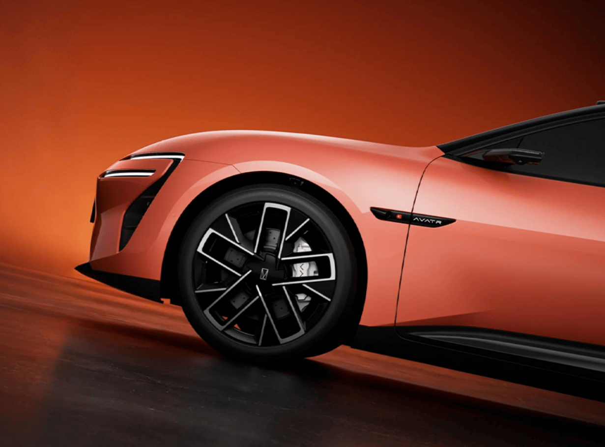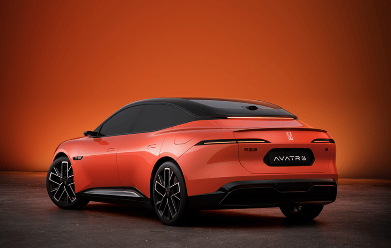 首先从图片可以看到,阿维塔06车身颜色很特别,红中带着橙,就像是早上天边的晨曦,既是充满活力的又是富含热情的,相比阿维塔11和阿维塔12的晖金配色要更显年轻。
