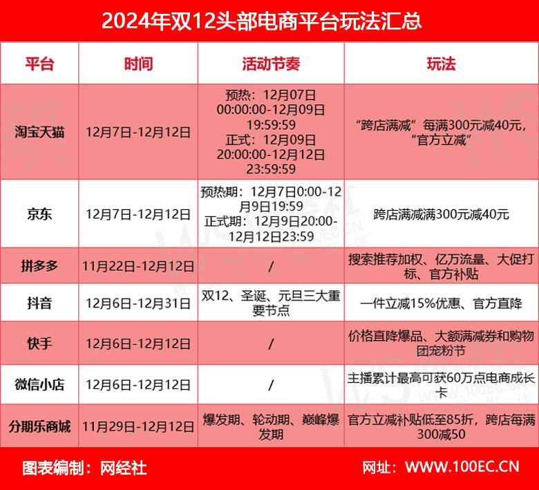 12月9日晚8点,淘宝、京东“双12”将正式开启,而抖音电商、快手电商则已于12月6日抢先开启了双十二活动。此前,淘宝、拼多多、京东等平台“摩拳擦掌”、积极备战,开启了双十二的招商,其中,早在11月22日,拼多多已开始了双十二的招商及大促活动。