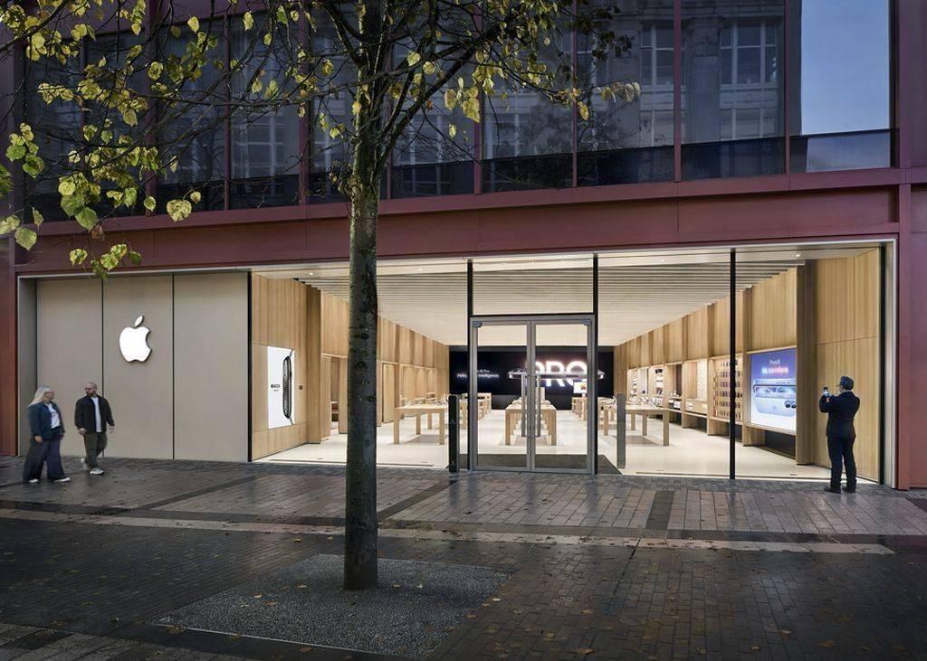 在零售网络方面,英国第一家 Apple Store 于 20 年前开业,如今英国共有 40 家门店,其中许多位于历史悠久的地点,包括伦敦摄政街和布朗普顿路的旗舰店。Apple Store 为顾客提供聚集、获得支持和探索公司所有产品和服务的场所。