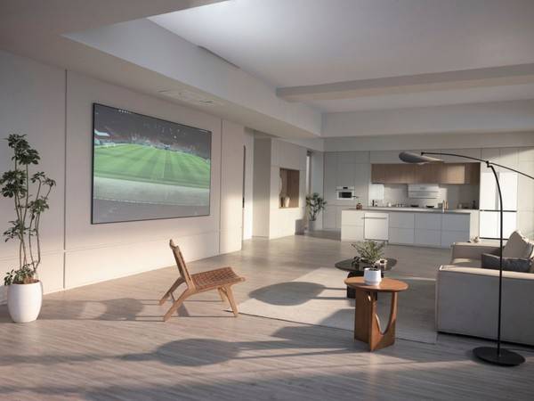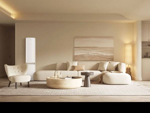 再到客厅场景之中,其选择海信旗下的旗舰产品海信U8N,它几乎与墙壁贴和在一起,让客厅看起来更加整洁。此外,在客厅中还应配有璀璨空调,不论是柜机还是挂机整体依旧保持着融和系白色为主的主色调,搭配上机身的细节,点缀机身设计美学的同时,也让它能够展现出主人独特的品味。