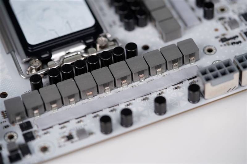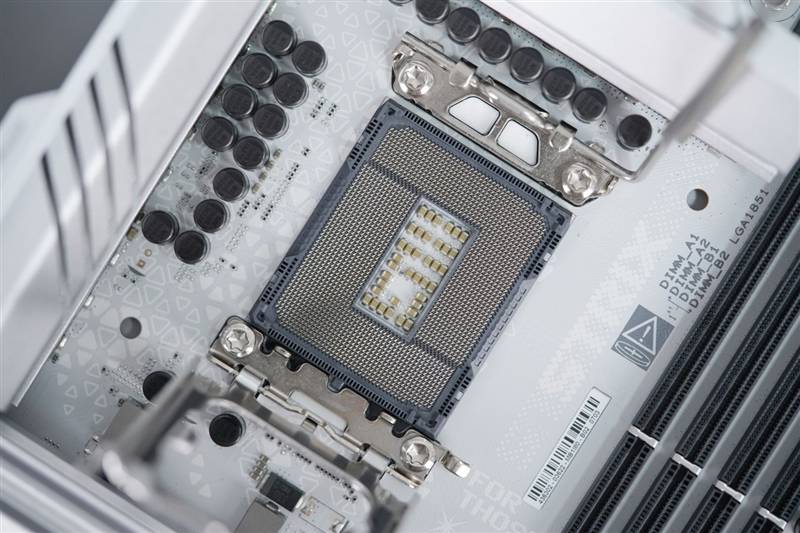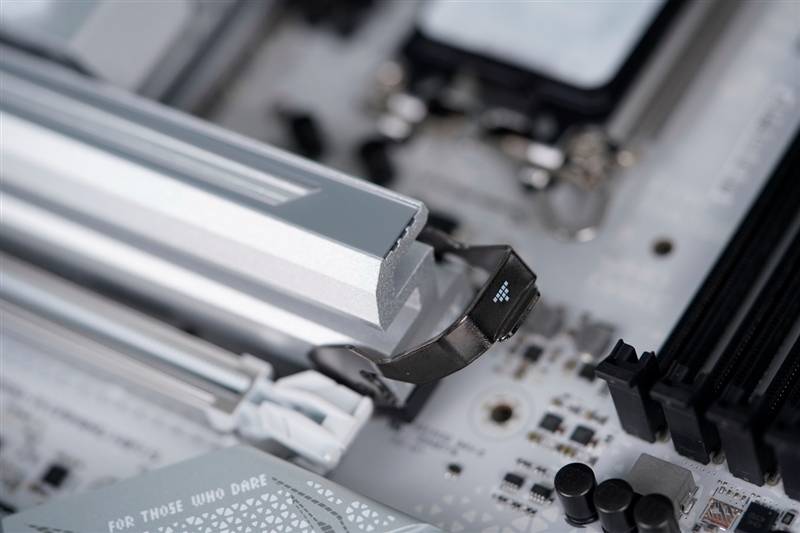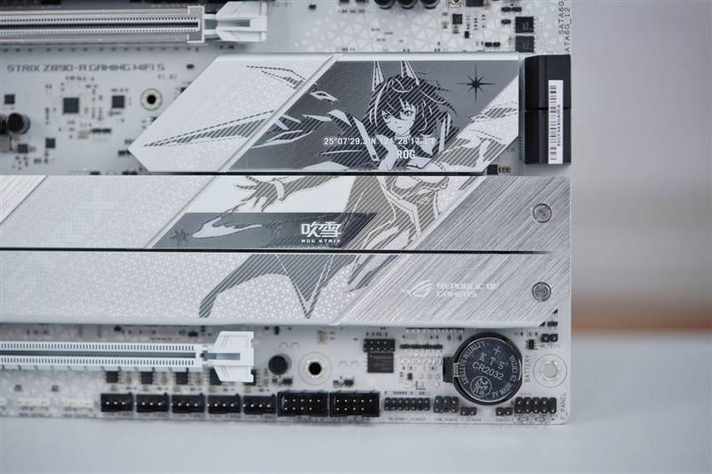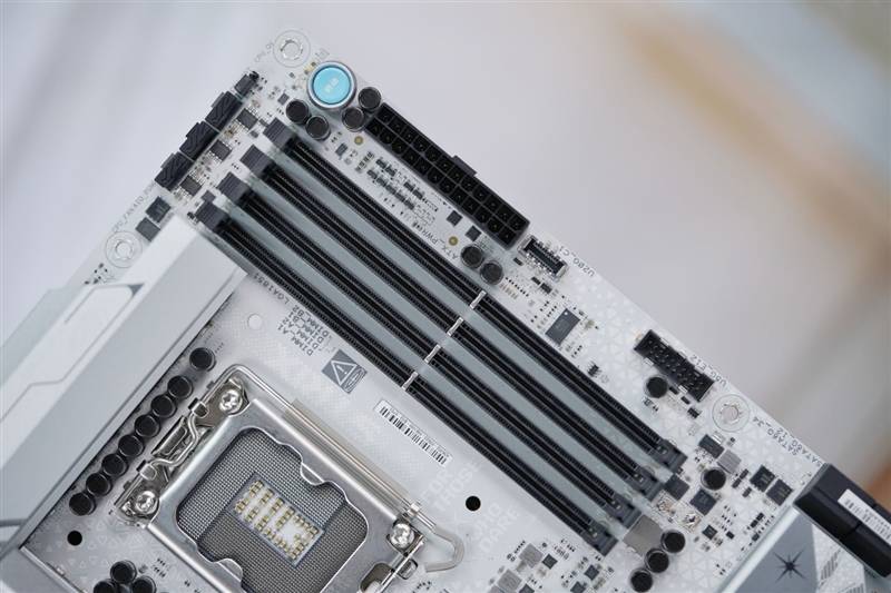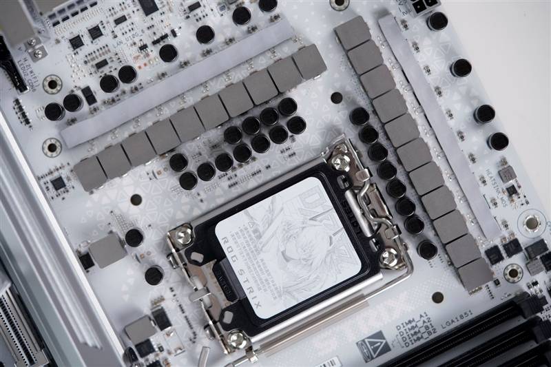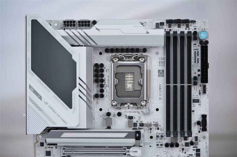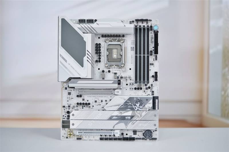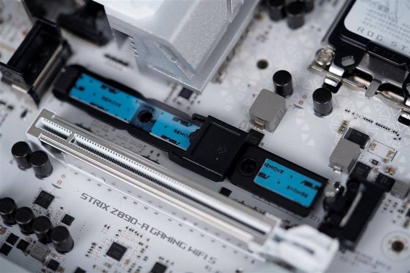 华硕ROG STRIX Z890-A GAMING WIFI S吹雪主板使用了全白PCB设计,配合银白色的散热片,颜值拉满。