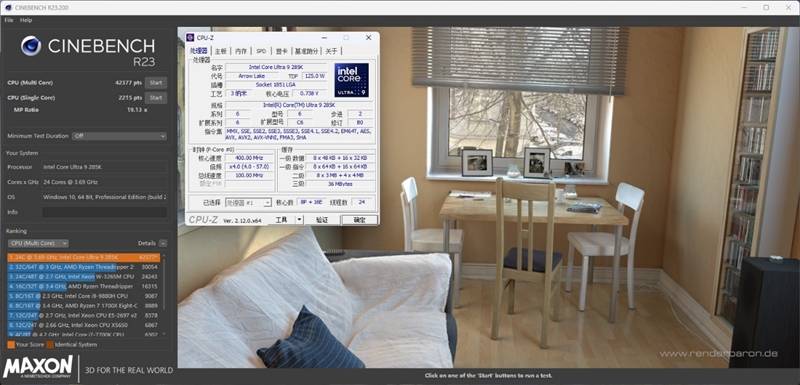 CINEBENCH R23测试,CPU单核成绩2215,多核成绩42377。