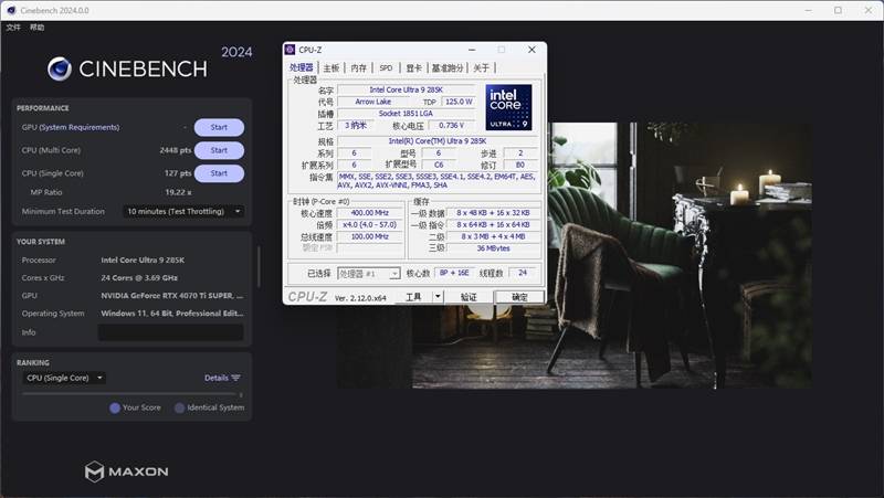 CINEBENCH 2024测试,CPU单核成绩127,多核成绩2448。