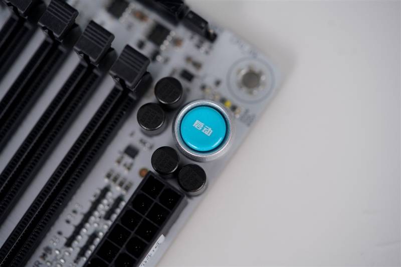 主板上还提供了一个快速启动按钮,对于发烧友调试设备时很方便。巧妙变成了吹雪蓝配色,“吹雪,启动!”