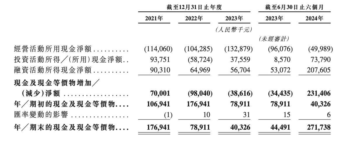 招股书显示, 2021年、2022年、2023年和2024年上半年,公司营收分别为1.26亿元、1.7亿元、2.56亿元和0.33亿元人民币,同期净亏损分别为1.46亿元、1.9亿元、8710万元和6510万元。