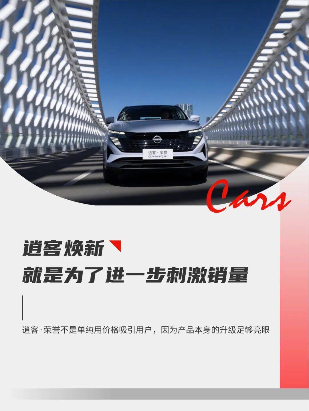 但是,良好的评价显然是不够的,逍客想要一个更高的评价。基于此,逍客焕新将以丰富产品线、降低售价门槛为基本操作思路。新车一定是和逍客以及逍客经典两款在售车型共同组成逍客产品线内部的三剑客,从而心思细腻地满足细分市场内用户的不同需求。考虑到刺激销量的根本目标,那就不能小打小闹,要让用户足够心动才行。逍客・荣誉版应该是“最便宜”的逍客才是。比如,比亚迪的所有荣耀版车型。甚至,刚刚上市的2024款天籁真心版,官方定价17.98万元,这个指导价也就成了天籁的入门价。