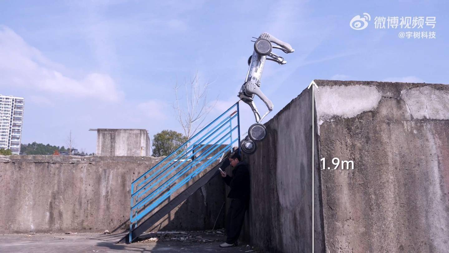 在将近 2 分钟的实拍视频中,B2-W 工业轮足机器狗大秀技能,上来就秀了一通高难度体操动作,包括原地旋转两周接倒立旋转三周半,后续更是展示了一套托马斯全旋,表明该机器狗升级具备更强的平衡性和运动控制能力。