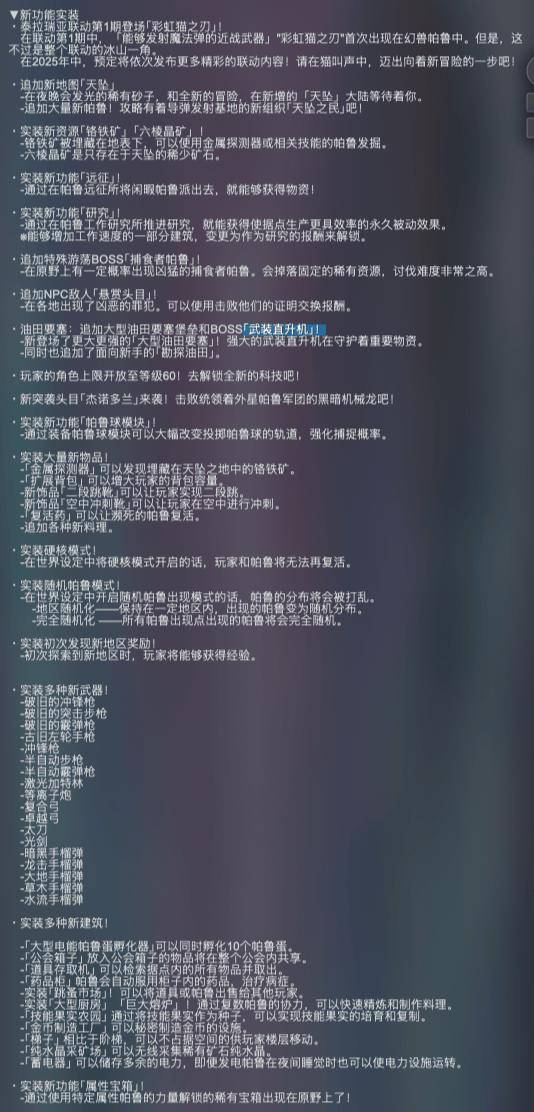 12 月 24 日消息,游戏《幻兽帕鲁》宣布旗下 0.4.11 大型更新“天坠之地(Feybreak)”正式上线,为游戏带来了全新的区域、帕鲁、建筑、远征、研究、硬核模式等大量新要素。