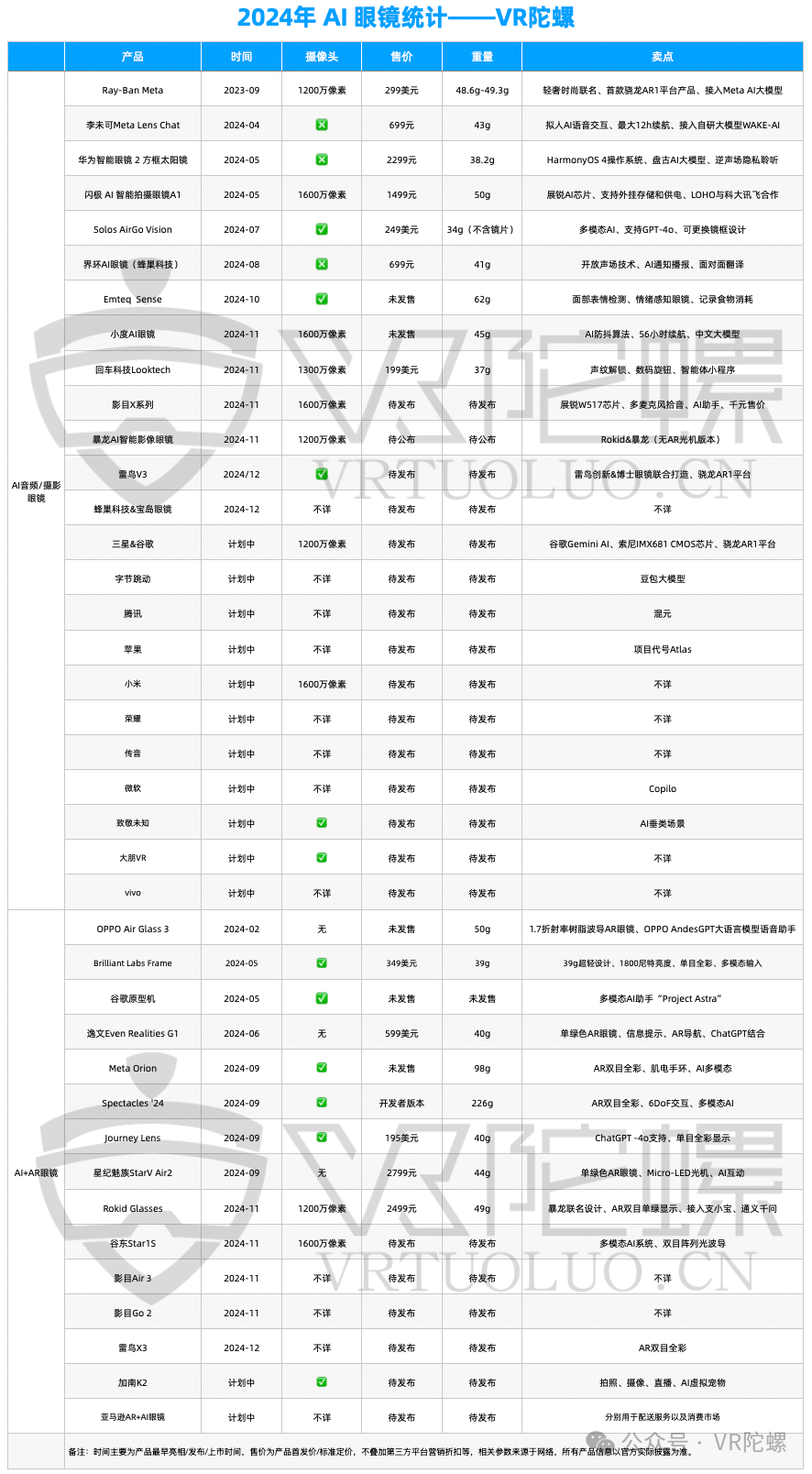 不过,产品化能力的增强,让更多厂商抢先进入赛道进行尝试。今年以来,百度已发布了小度AI眼镜,雷鸟创新在年末发布了V3/X3,影目科技推出了INMO AIR3、INMO GO2等产品。另外有媒体报道,小米、三星的AI眼镜产品将在明年发布,OPPO、vivo、腾讯、字节也在考虑这条赛道。