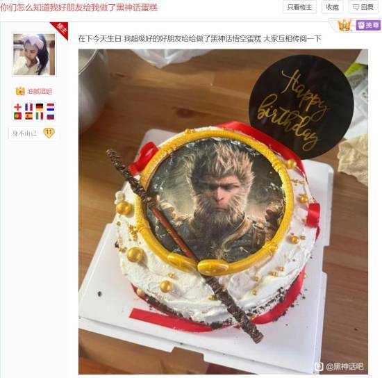 今日,一位名叫油腻湿姐的网友在贴吧晒出了自己的生日蛋糕。这款蛋糕的主题是热门游戏《黑神话:悟空》,其制作精良且富有创意。