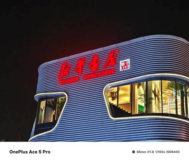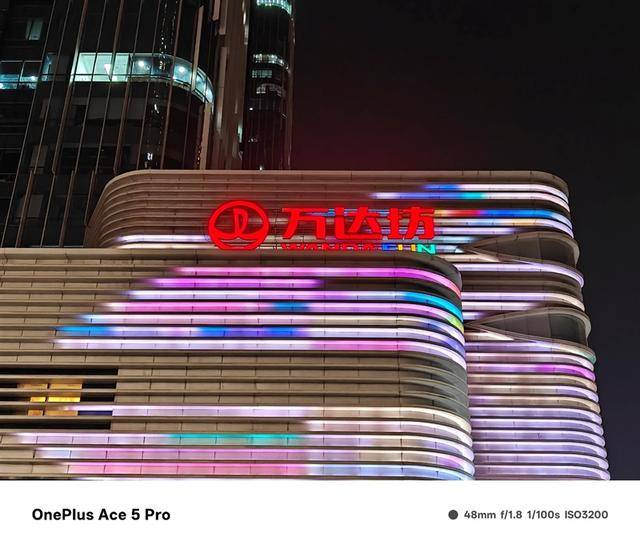 我们也使用一加Ace 5 Pro拍摄了一些夜景,在灯光混杂的场景下,色彩不会出现泛白的情况,尤其是拍摄大红色的灯牌,色彩还原纯正无瑕,细腻而自然。
