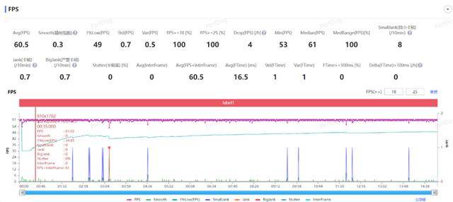 原神手游在原始帧率、原始画质和分辨率下,进行一局须弥城跑图测试,游戏在810×1782分辨率下平均帧率60.5FPS满帧运行,游戏平均波动仅为0.3,表现极其稳定。