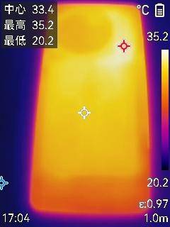 游戏过后机身背面最高温度为35.2摄氏度,同比原生帧率画质下仅增长了不到2摄氏度。