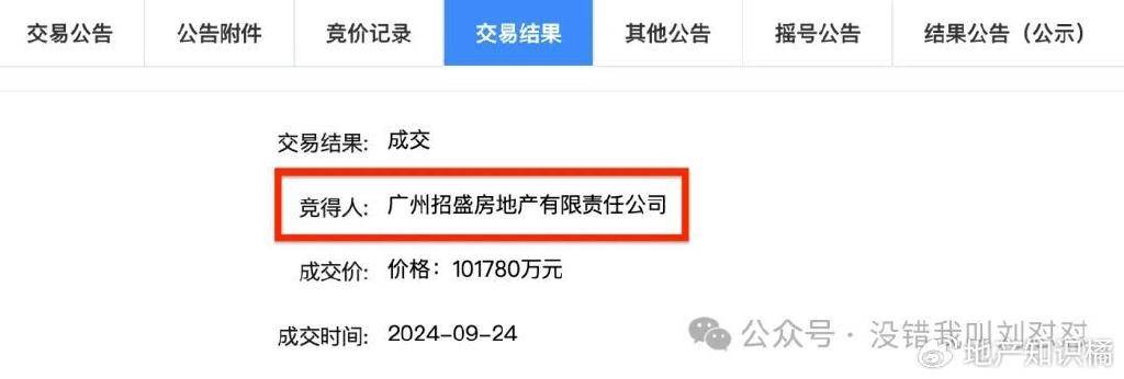 广州招盛房地产有限责任公司,也就是这块地最后的拿地主体。